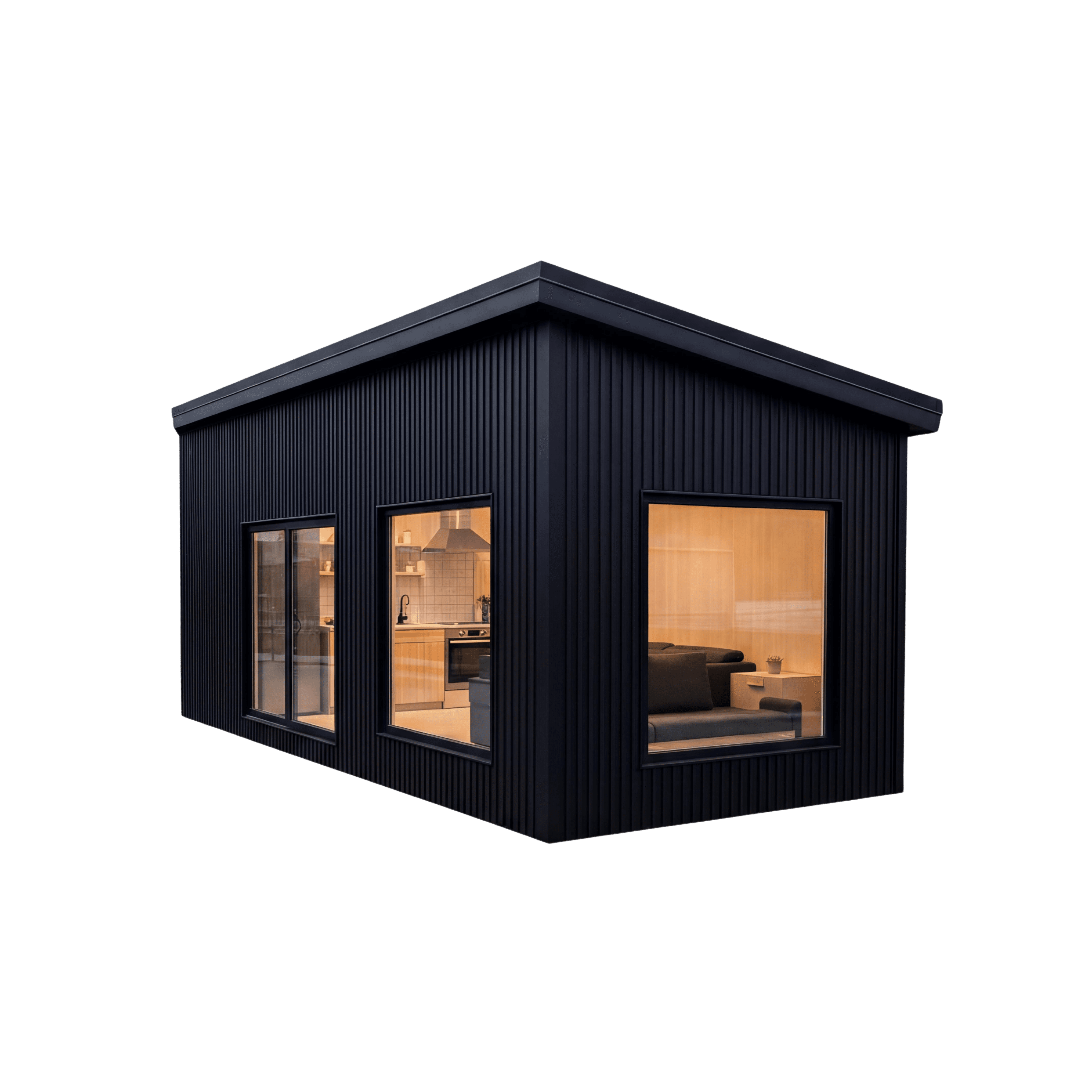 With a sleek shed roofline, vertical cladding, and large window openings (including a wide glazed opening and a statement picture window), Timberline is made to feel like a modern cabin, perfect for resort properties, glamping sites, and private landowners who want a strong design presence.